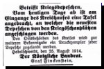 Mit Ausbruch des I. Weltkrieges wird das Bild des Habelschwerdter Kreisblattes zunehmend geprägt von Anordnungen, Verboten und Aufrufen aller Art.